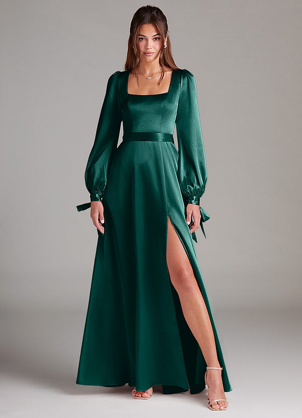 Azazie Leonia A-Line Long Sleeve Metallic Satin Dress