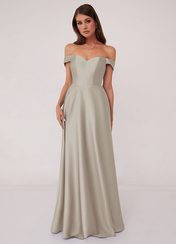 Azazie Barbie™ AZAZIE 1013 Off Shoulder Dropwaist Stretch Satin Ball Gown