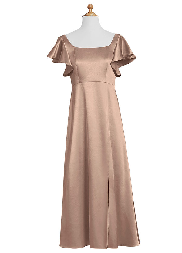 Azazie Bondi Junior A-Line Side Slit Metallic Satin Dress