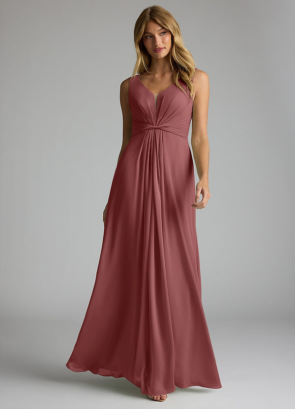 Azazie Gina A-Line V-Neck Pleated Chiffon Dress