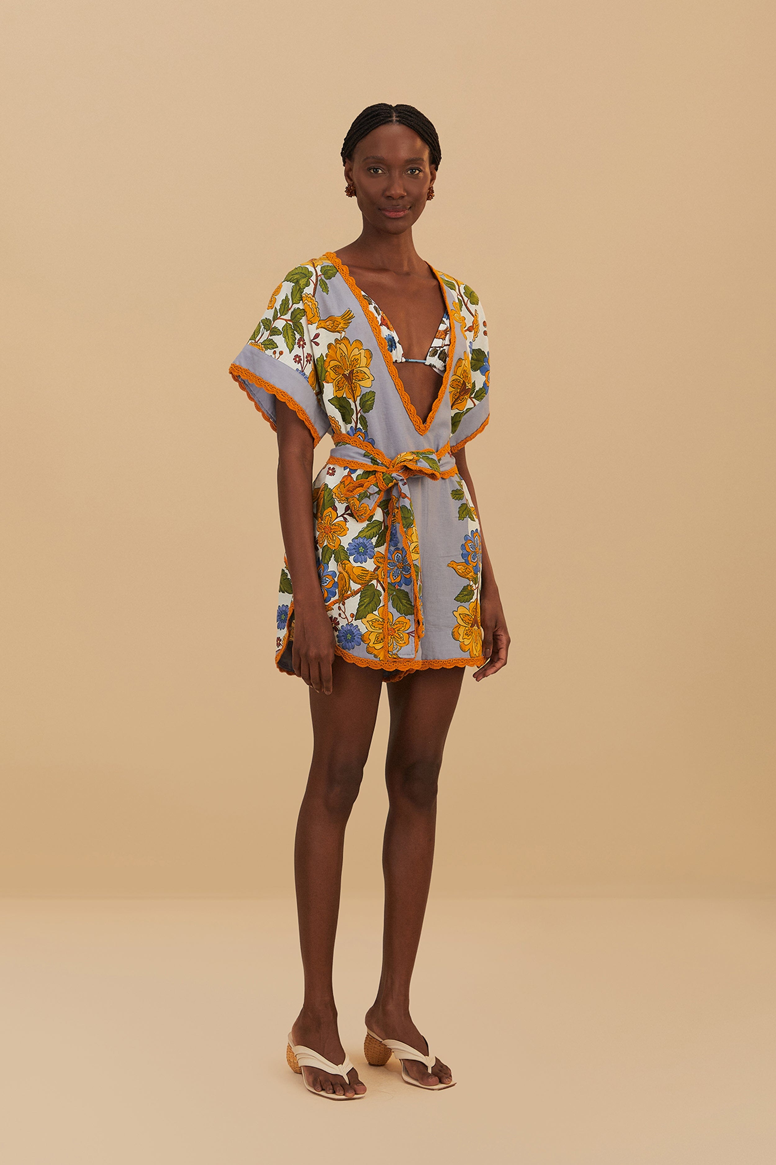 Farm Rio blue garden scarf romper