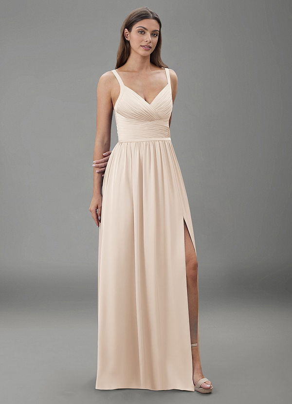 Azazie Chanel A-Line Pleated Stretch Satin Dress