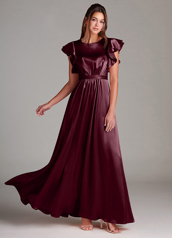 Azazie Daphne A-Line Ruched Metallic Satin Floor-Length Dress