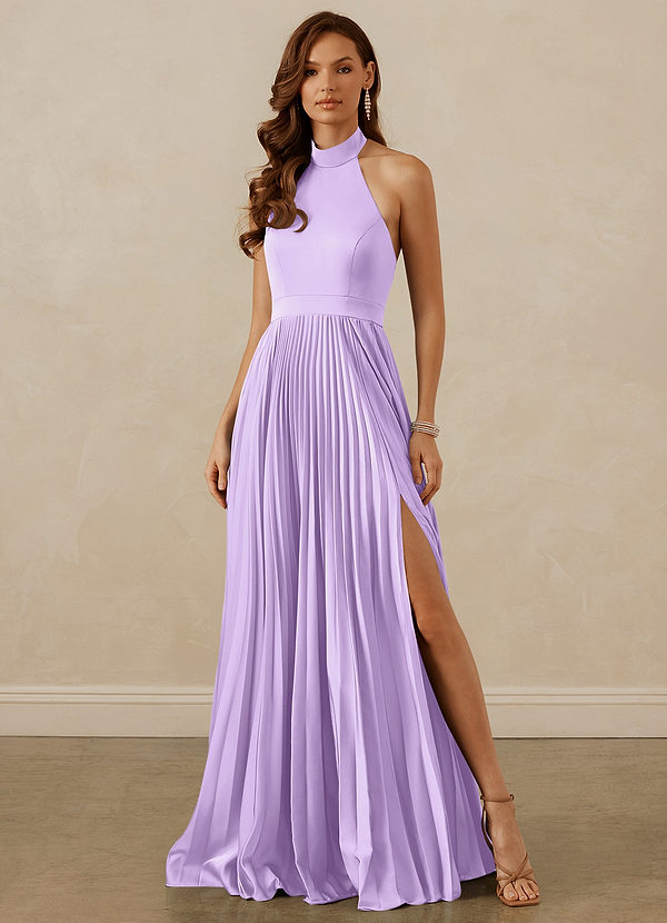 Azazie Christian Siriano Bridal for Azazie 1007 Pleated Halter Stretch Satin A-line Dress