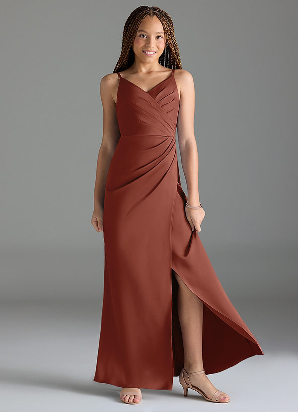 Azazie Maci Junior Mermaid Pleated Stretch Satin Dress