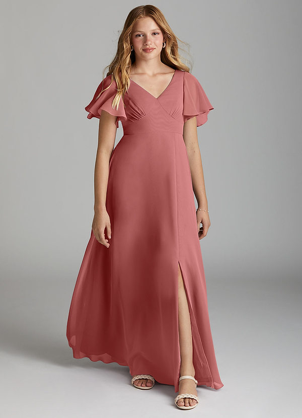 Azazie Kimber Junior A-Line Pleated Chiffon Dress