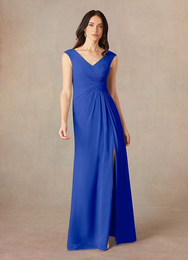 Azazie Sally A-Line V-Neck Pleated Chiffon Dress