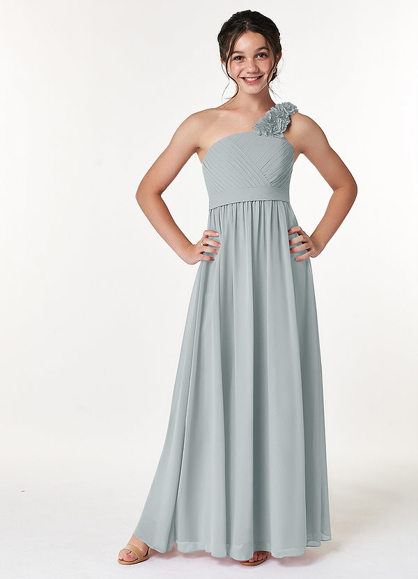 Azazie Flower Junior A-Line Pleated Chiffon Dress