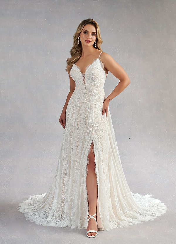 Azazie James A-Line V-Neck Lace Dress