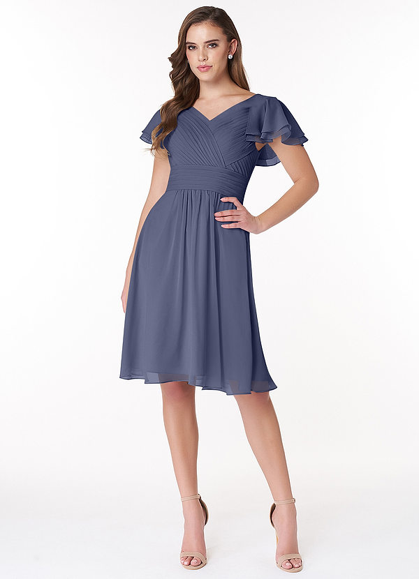 Azazie Hadley A-Line Pleated Chiffon Knee-Length Dress