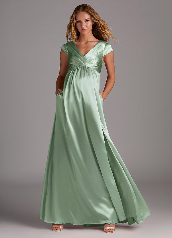 Azazie Allessia A-Line Metallic Satin Floor-Length Dress