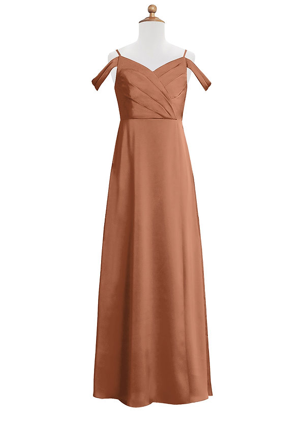 Azazie Ocean Junior A-Line Off the Shoulder Stretch Satin Dress