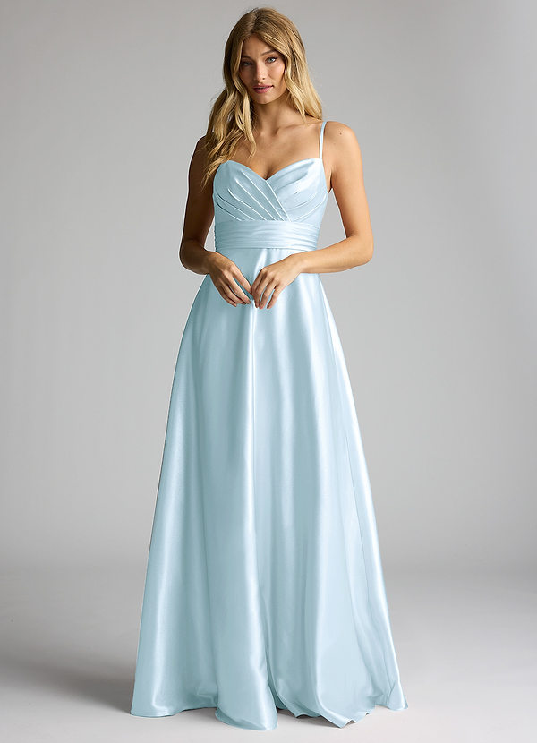 Azazie Oliana A-Line Pleated Metallic Satin Dress