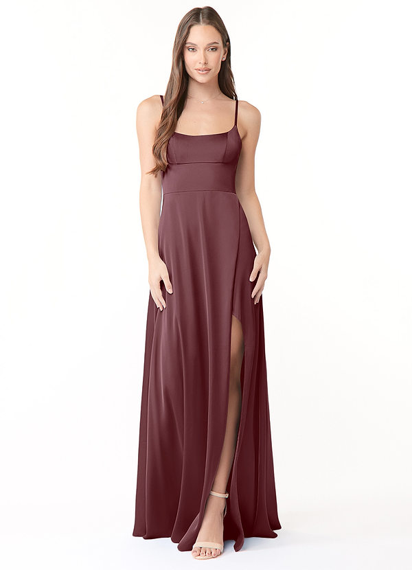 Azazie Halsey Sheath Side Slit Stretch Satin Dress
