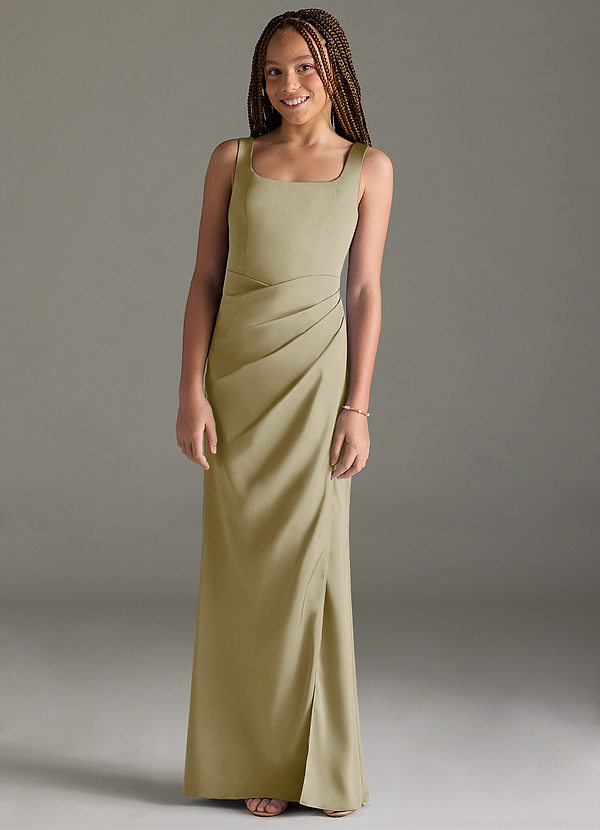 Azazie Mero Junior Mermaid Pleated Stretch Satin Dress