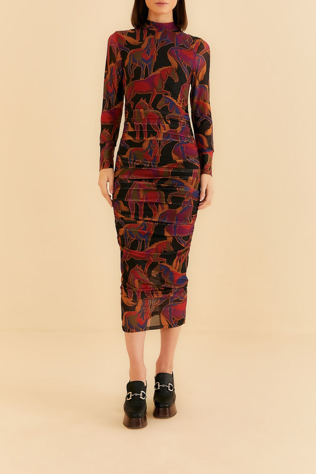 Farm Rio black wild horses tulle midi dress