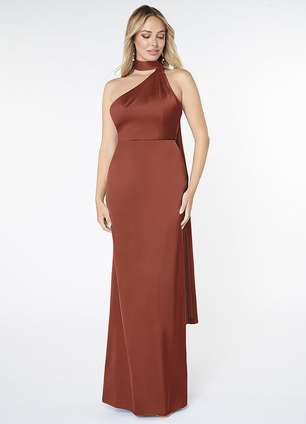 Azazie Kaylani Mermaid High Neck Stretch Satin Dress