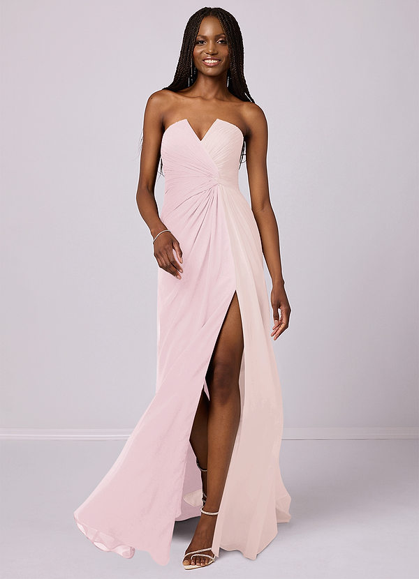 Azazie Barbie™ AZAZIE 1028 Mermaid Strapless Chiffon Court Train Dress Blushing Pink/Rose Petal
