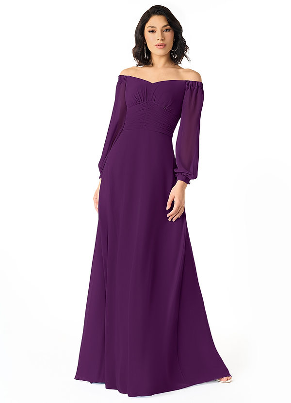 Azazie Rubina A-Line Long Sleeve Chiffon Dress