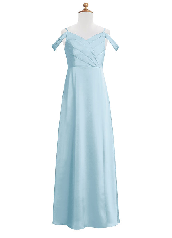 Azazie Ocean Junior A-Line Off the Shoulder Stretch Satin Dress