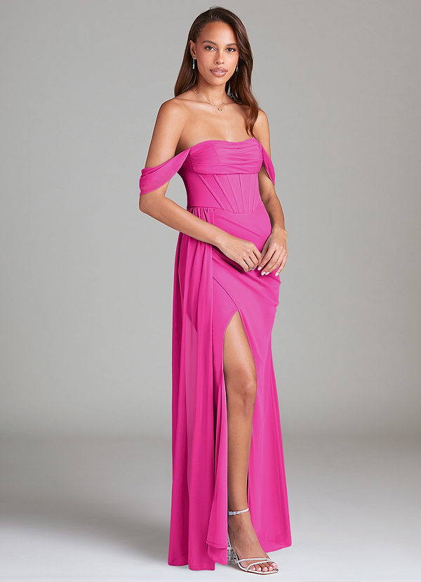 Azazie Amyra Sheath Off the Shoulder Mesh Convertible Dress