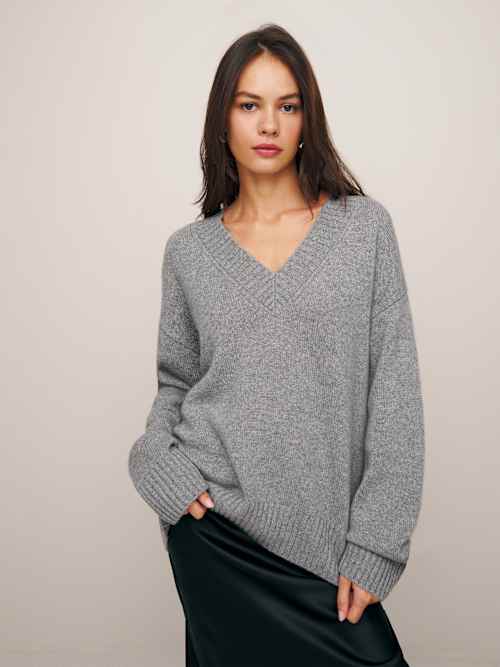 Reformation Jadey Cashmere Oversized V-neck Sweater
