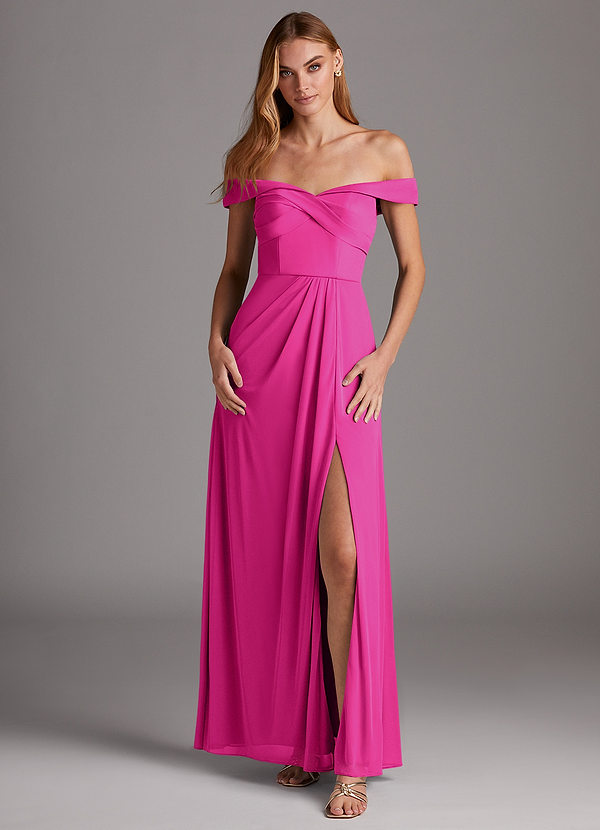 Azazie Mena A-Line Off the Shoulder Mesh Convertible Dress