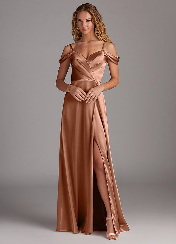 Azazie Ocean A-Line Off the Shoulder Metallic Satin Dress