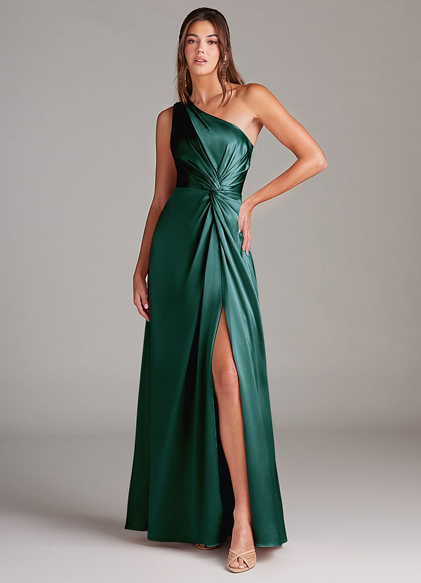 Azazie Brooke A-Line One Shoulder Metallic Satin Dress