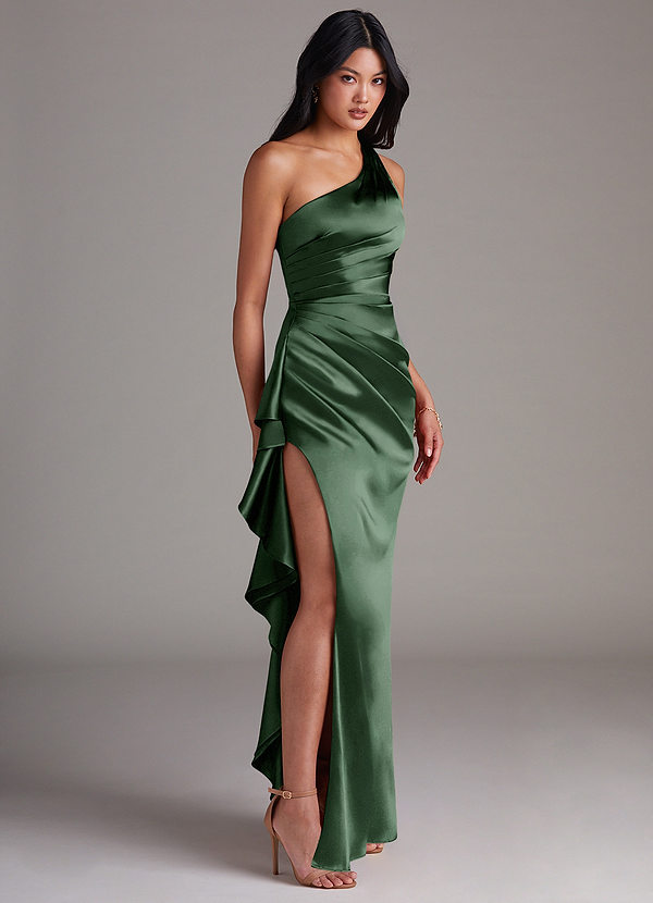 Azazie Latrice Sheath One Shoulder Metallic Satin Dress