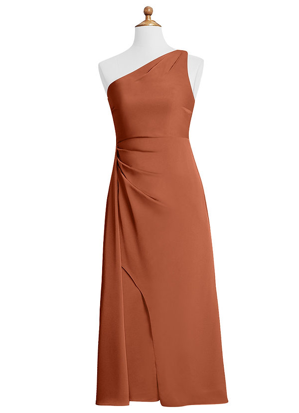 Azazie Maron Junior A-Line Pleated Stretch Satin Dress