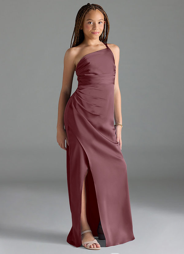 Azazie Eren Junior Sheath Pleated Stretch Satin Dress