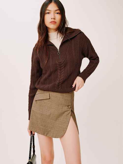 Reformation Lucca Cotton Cable Half Zip Sweater