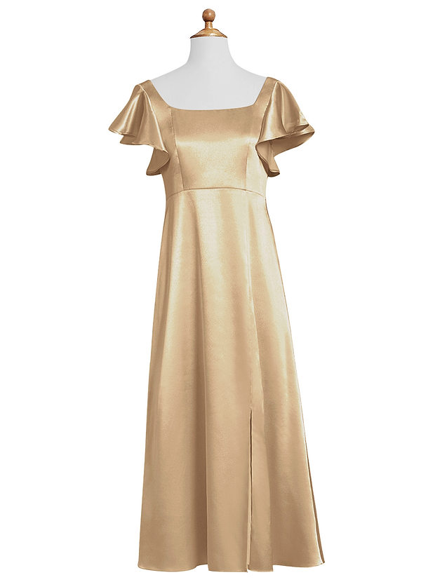 Azazie Bondi Junior A-Line Side Slit Metallic Satin Dress