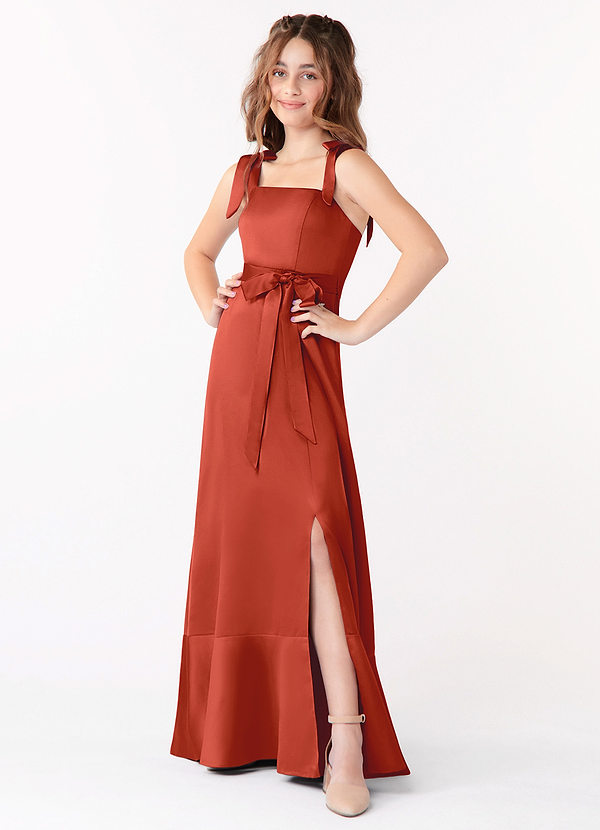 Azazie Barbara Junior A-Line Bow Stretch Satin Dress