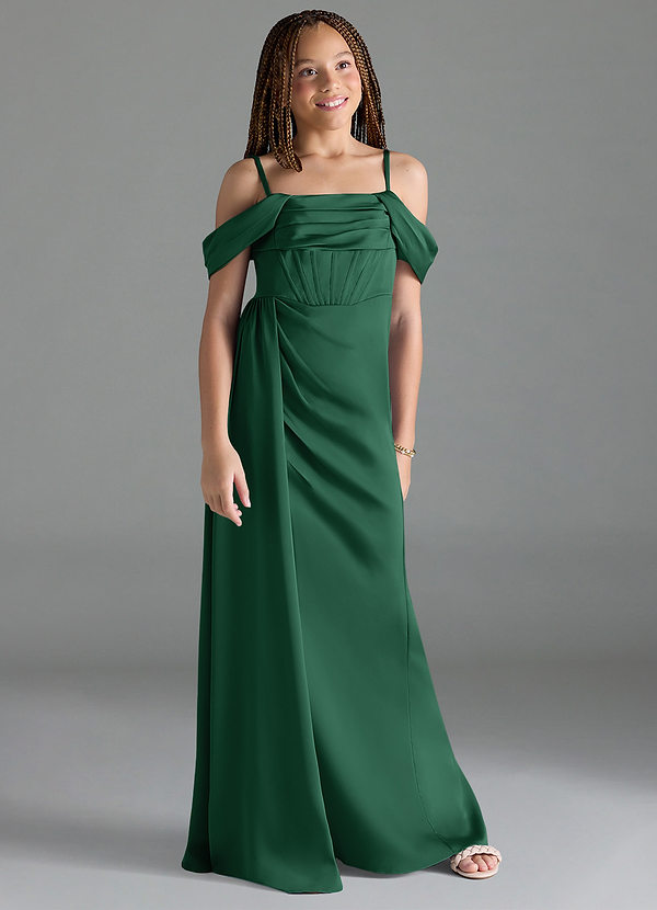 Azazie Amyra Junior Sheath Off the Shoulder Stretch Satin Dress