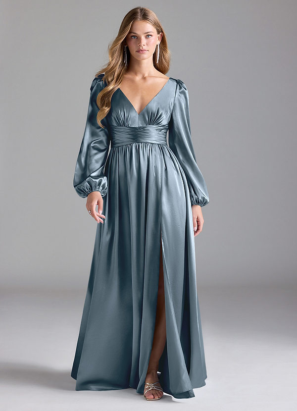 Azazie Norah A-Line Metallic Satin Dress