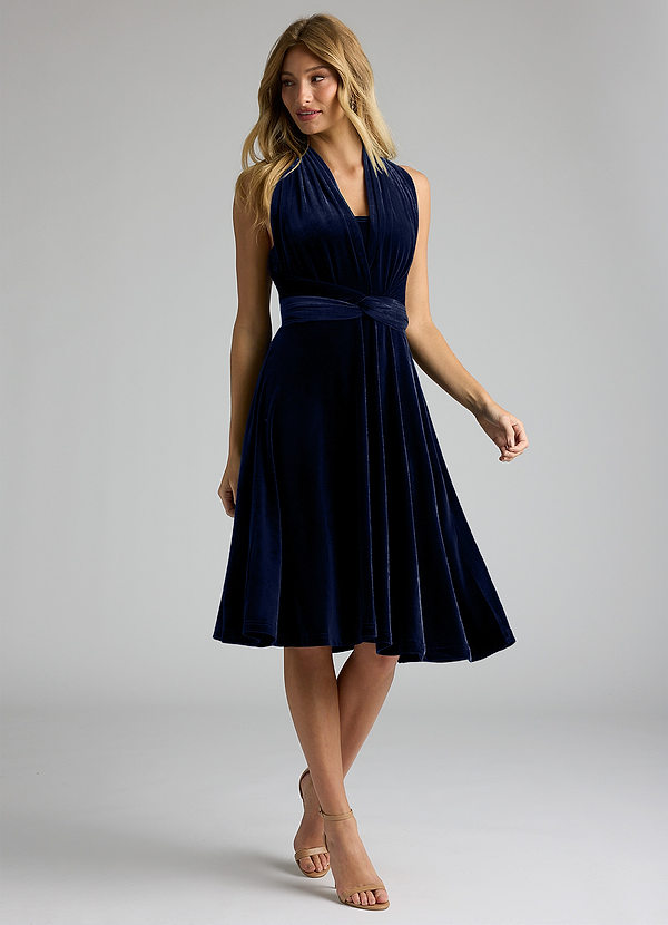 Azazie AZAZIE ESSENTIALS A-Line Bow Velvet Convertible Dress