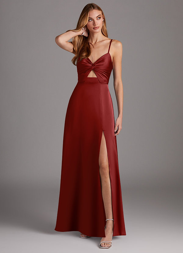 Azazie Jenna A-Line Pleated Stretch Satin Dress
