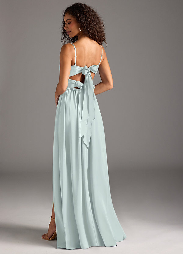 Azazie Zeya A-Line Pleated Stretch Satin Dress