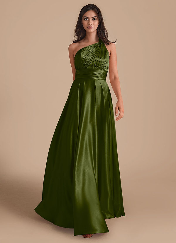 Azazie Charlize A-Line One Shoulder Metallic Satin Dress