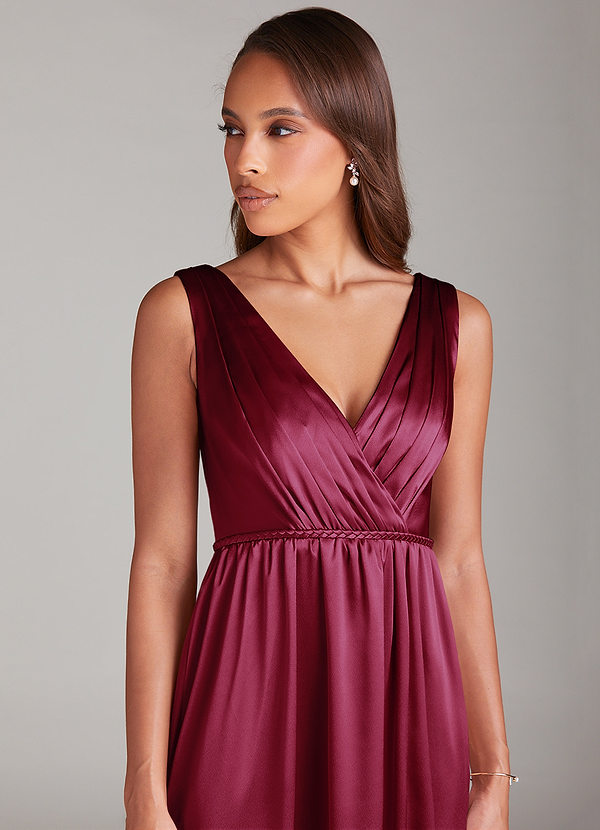 Azazie Tanicia A-Line Pleated Metallic Satin Dress