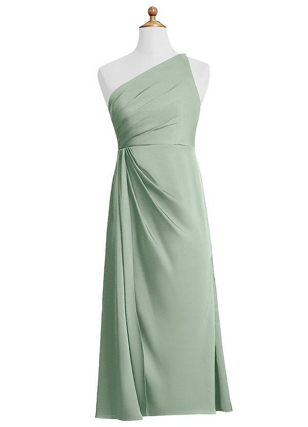 Azazie Mika Junior A-Line Pleated Stretch Satin Dress