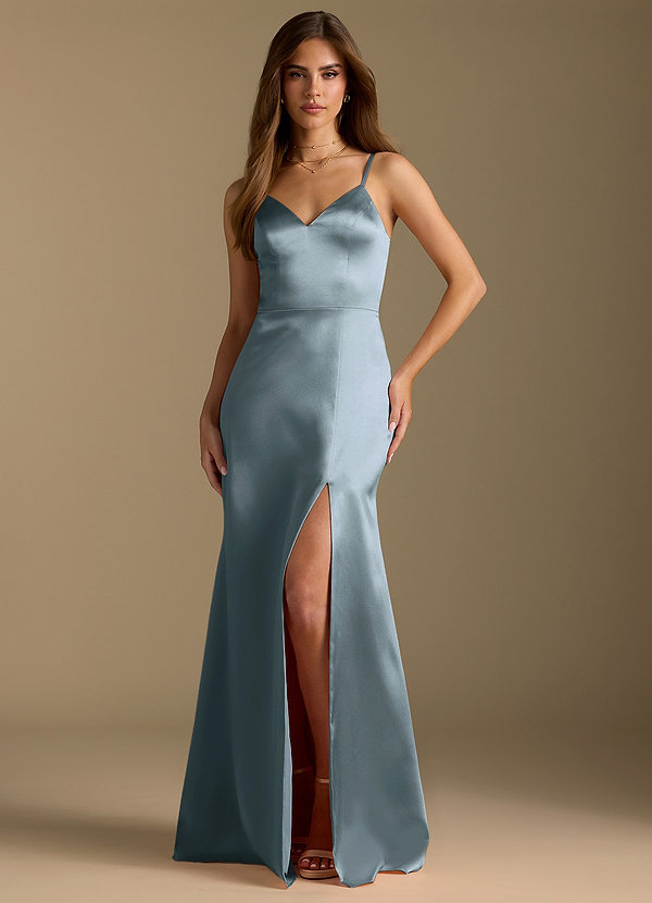 Azazie Elissia A-Line Metallic Satin Dress