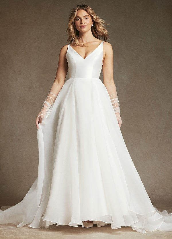 Azazie Calliana A-Line V-Neck Mikado Dress