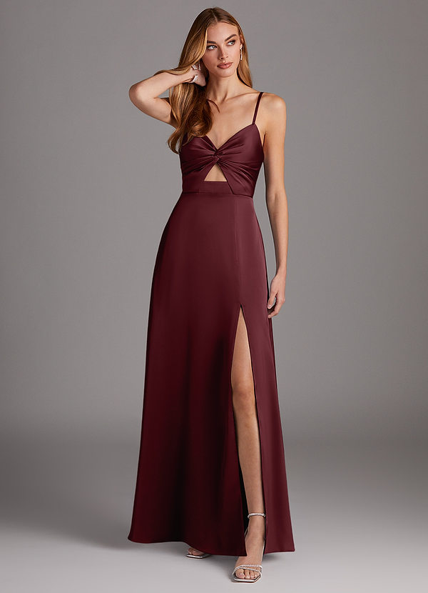 Azazie Jenna A-Line Pleated Stretch Satin Dress