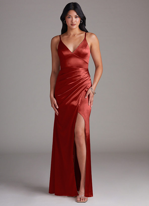 Azazie Shania Sheath Pleated Metallic Satin Dress