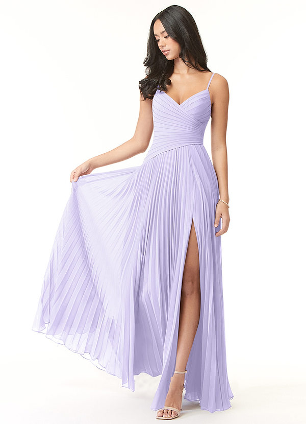 Azazie Vini A-Line V-Neck Pleated Chiffon Dress