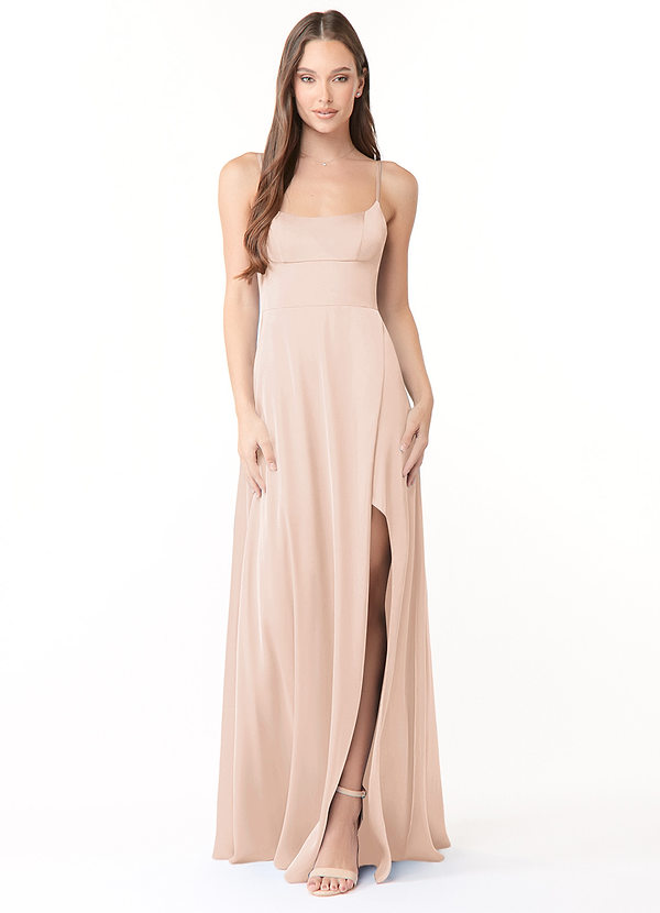 Azazie Halsey Sheath Side Slit Stretch Satin Dress