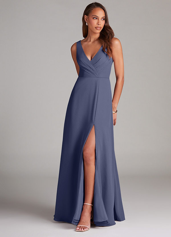 Azazie Nelly A-Line Pleated Chiffon Dress